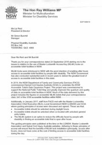 Letter from NSW Minister for Disability Service 05Oct18